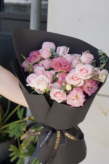 翡翠粉玫瑰 粉乒乓 粉桔梗 尤加利 雪梅